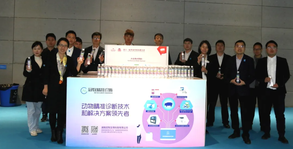 冠牧精准诊断作为本场大会饮用水赞助商为广大养殖朋友带来了针对动物疫病的精准诊断技术解决方案。
