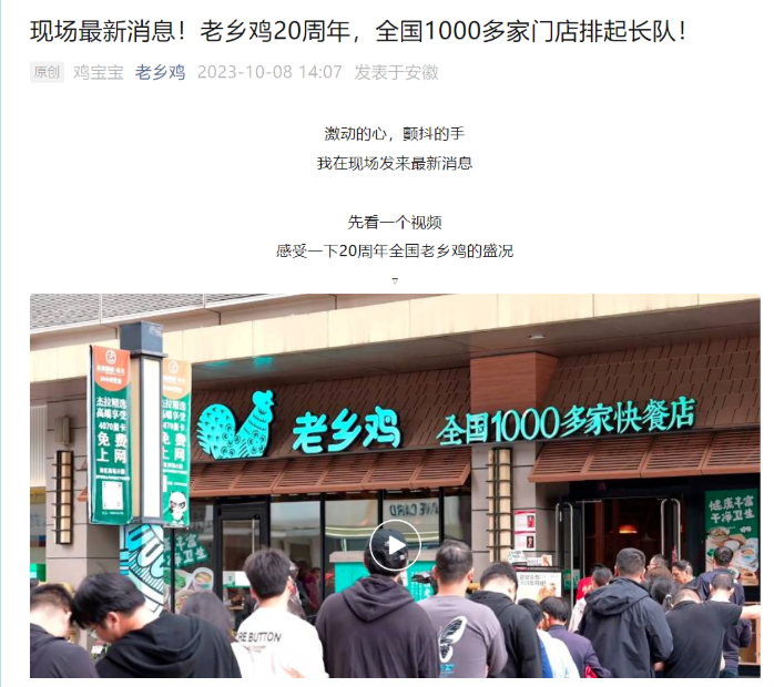 而通过20周年店庆免费赠送老乡鸡鸡蛋,这一低成本的操作,也为老乡鸡鸡蛋销售打开了局面。\