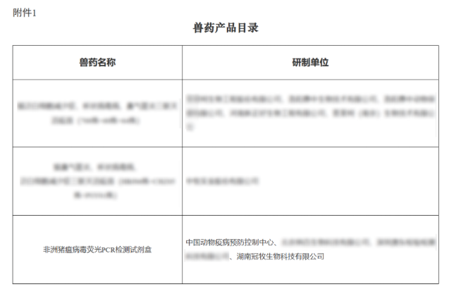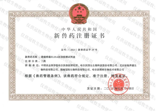 2023年12月6日,《中华人民共和国农业农村部公告第731号》文件显示,冠牧精准诊断非洲猪瘟病毒荧光PCR检测试剂盒通过农业农村部兽药产品注册。